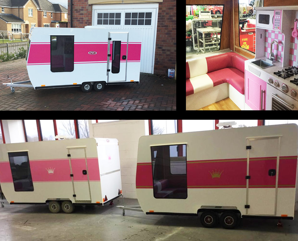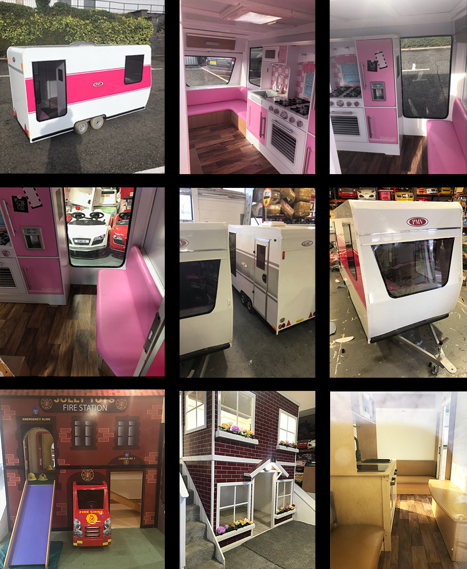 Prestige Miniature Vehicles specialise in the design and built of glass fibre, battery powered scaled version miniature cars, caravans, trucks and trailers. Our specialised workshop is based in Glasgow, delivering miniature vehicles throughout the UK, Europe and worldwide. All miniature vehicles are bespoke and custom made to our clients exact specifications. All our vehicles are built with safety in mind, as each machine has a safety cut off switch. We can also limit the speed of each model to your requirements. The usual speed is set at walking pace of 5mph although this can be increased to 14mph.